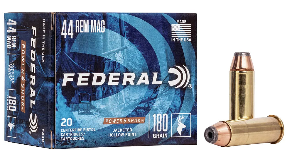 Experience the power and precision of FEDERAL .44REM MAG ammunition. This high-quality round features a 180 grain jacketed hollow point bullet, delivering maximum expansion and stopping power. Perfect for hunting and self-defense purposes. Trust FEDERAL for exceptional performance every time.