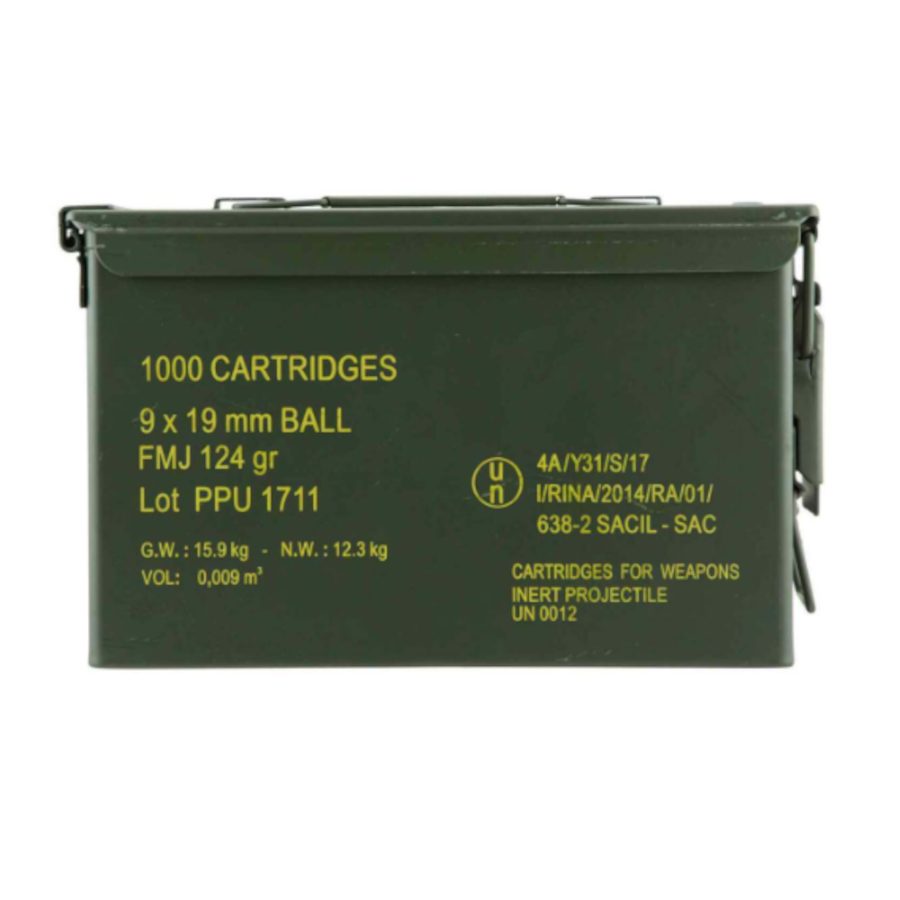 PPU PPRM9M RANGEMASTER PISTOL AMMO, 9MM NATO, FMJ, 124GR - GREEN AMMO CAN OF 1000 ROUNDS