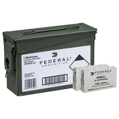 FEDERAL 7.62x51 NATO (.308WIN), 149GR FMJ, 220RDS IN BULK IN AN AMMO CAN
