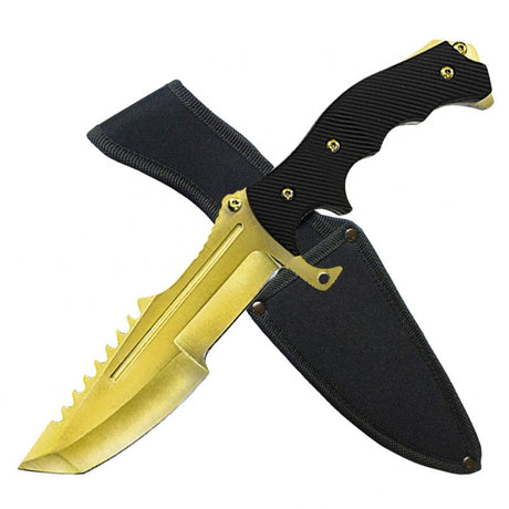 11" Gold Military Combat Fighter Hunter Bowie Knife Full Tang Tanto Blade