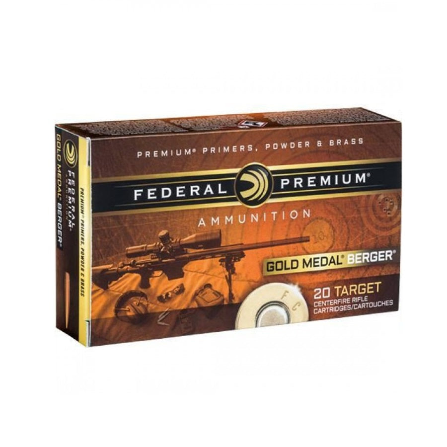 Federal Gold Medal Berger loads feature an advanced boat-tail bullet with a high ballistic coefficient to provide the flattest trajectories, less wind drift and surgical long-range accuracy. To get the most performance out of the bullet designs, these loads use Gold Medal match primers, Federal brass and specially formulated propellant, and they adhere to Federal Premium’s strictest specifications for accuracy, pressure and velocity. This ammunition is new production, non-corrosive, in boxer-primed, reloadable brass cases.