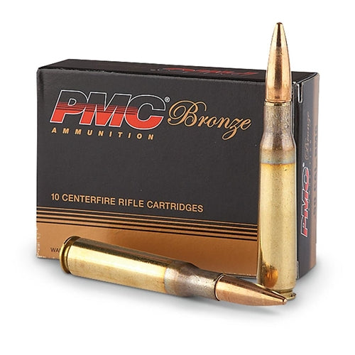 For shooters and hunters who appreciate affordable quality ammunition, the PMC Bronze Line offers reliable performance for every shooting application, from target shooting to hunting. This long popular ammunition line makes it possible for hunters and riflemen to enjoy high volume shooting without emptying their wallets. Bronze ammunition is available in Full Metal Jacket (FMJ) bullet types in .223 Remington, .308 Winchester and .50 BMG in commercial and military packaging.