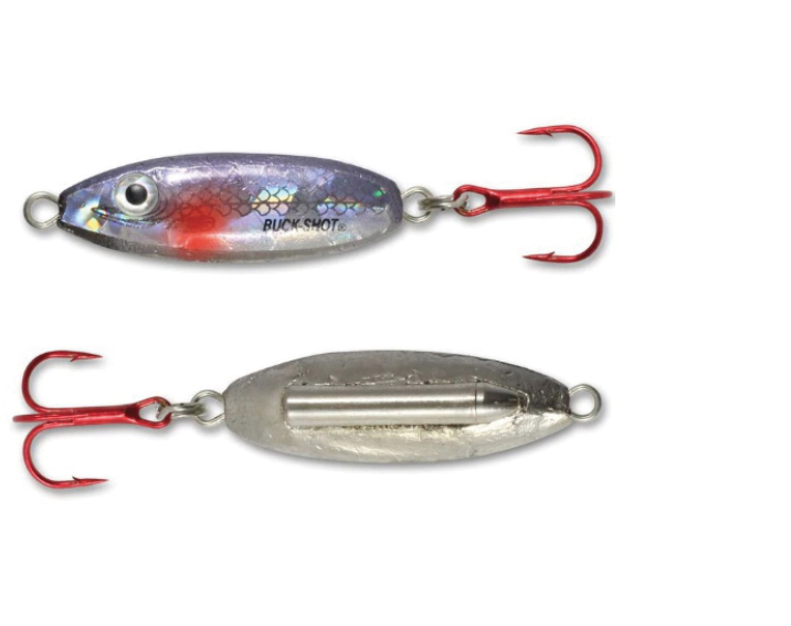 The Buck-Shot® rattle spoon is deadly year-round for vertical jigging perch, walleye, trout, bass and pike. Jig aggressively in a lift-fall manner to call fish from a wide radius and make them strike. Tip with a minnow head, waxworms or impulse minnow head and perch eye.