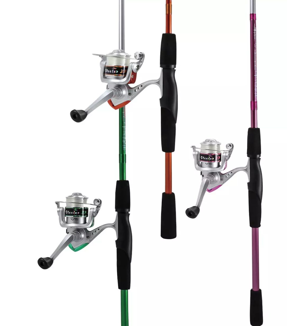 Okuma Steeler XP spinning combos, the colorful, fun and easy-to-fish Steeler rod and reel combos, a great choice for trips to the pond or lake.