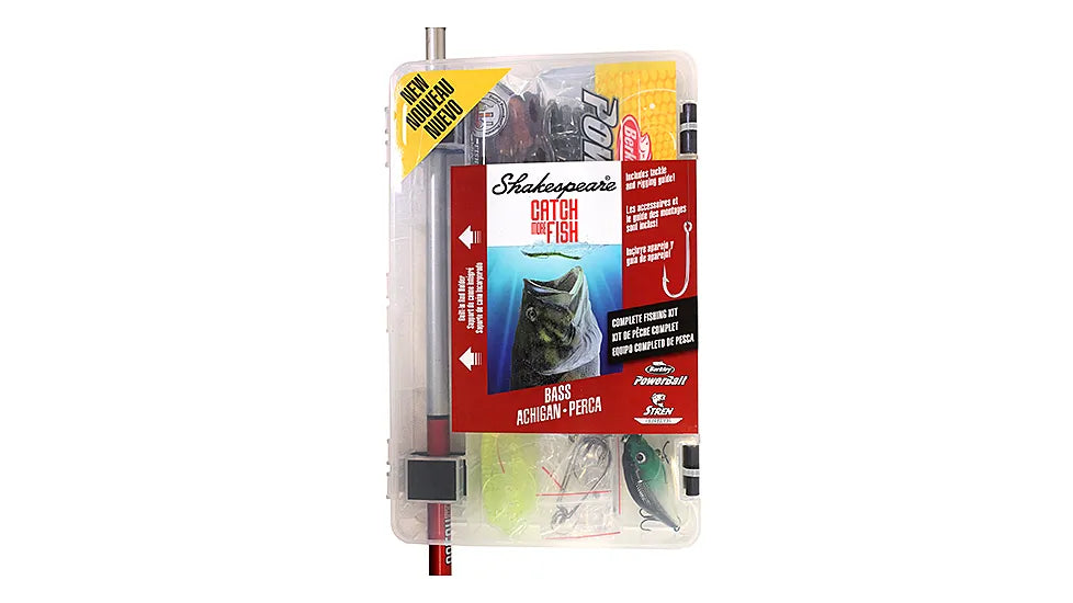 Become an expert angler with the SHAKESPEARE CMF2BASS CATCH MORE FISH BASS COMBO. This combo includes a 35 size spinning reel mounted on a 6'6", 2PC medium rod, as well as a box of tackle. With this setup, you'll have all the tools you need to reel in that trophy bass.