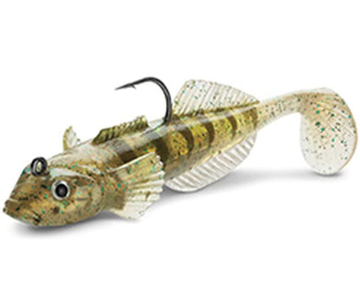 The WildEye® Live series is the most realistic series of baits available. Internally weighted body creates an incredibly life-like swimming. The realistic color patterns and shape of the bait is backed up with 3-D holographic WildEye®, holographic swimmin' flash foil and a tough yet soft outer body. This swimbait has a goby body and color pattern and a back VMC® needle point hook.