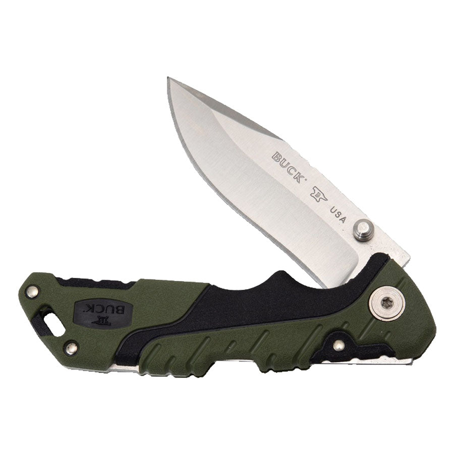 BUCK KNIFE PURSUIT, SM FOLDER, BLACK/GREEN MOLDED HDL