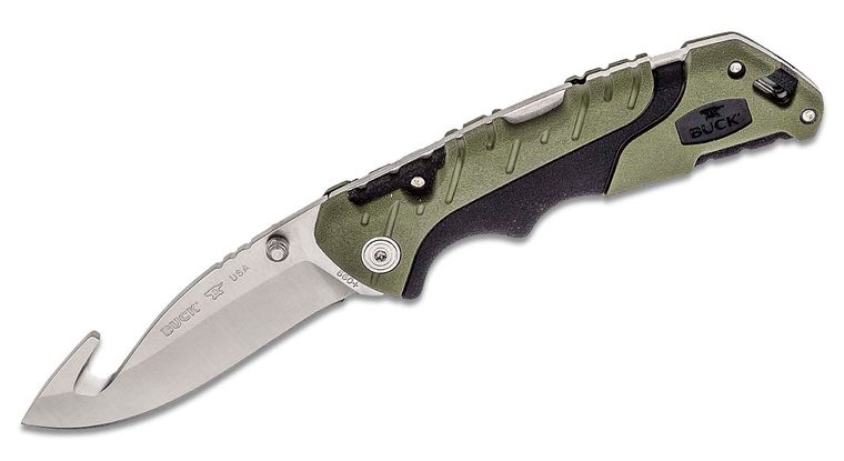 BUCK PURSUIT, LG, FOLDER, BLACK/GREEN MOLDED HDL, GUTHOOK