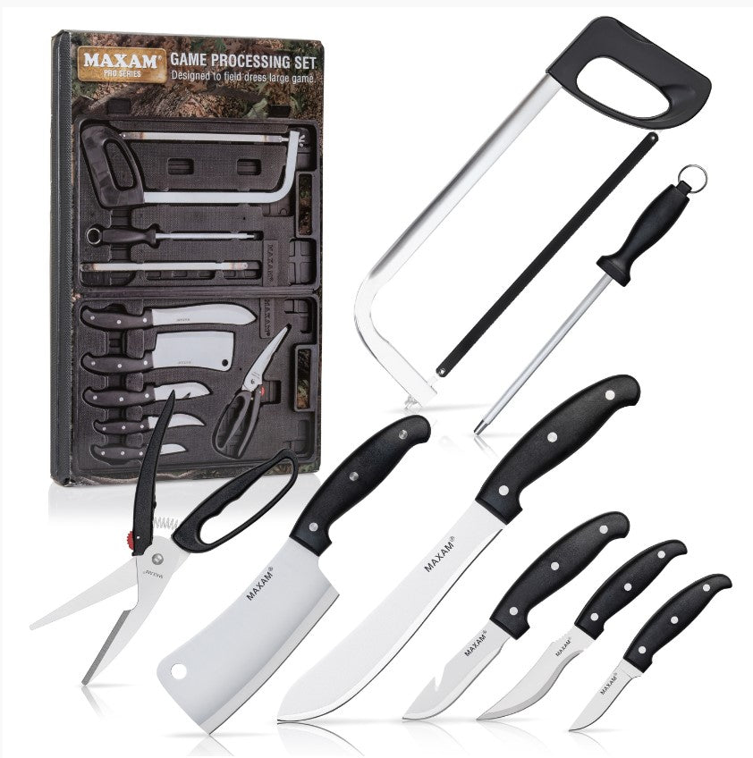 COMPLETE FIELD DRESSING KIT: The Maxam Game Processing Set is loaded with all the knives and tools you'll need to field dress any game you bag. Be prepared before the hunt and make sure these tools are with you to ensure an excellent trip.