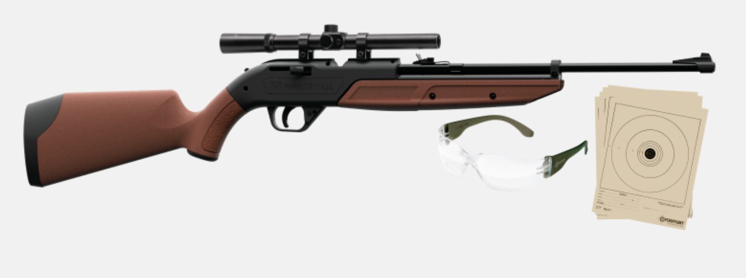 The legendary Crosman® 760 Pumpmaster® is the trusted solution for the youth or beginning shooter for over 40 years. With easy-to-use variable pump features, you can control your power from 350 fps to 700 fps for everything from plinking to pest control. This repeater shoots BBs or .177 caliber pellets and comes with an elevation-adjustable rear sight and blade front sight to help you stay on target. Offering a smooth bore steel barrel with crossbolt safety to teach young outdoorsmen proper use and handling. Outfitted with a 4x15 scope for greater accuracy, 5 official airgun targets, and Crosman safety glasses with high impact lenses.
