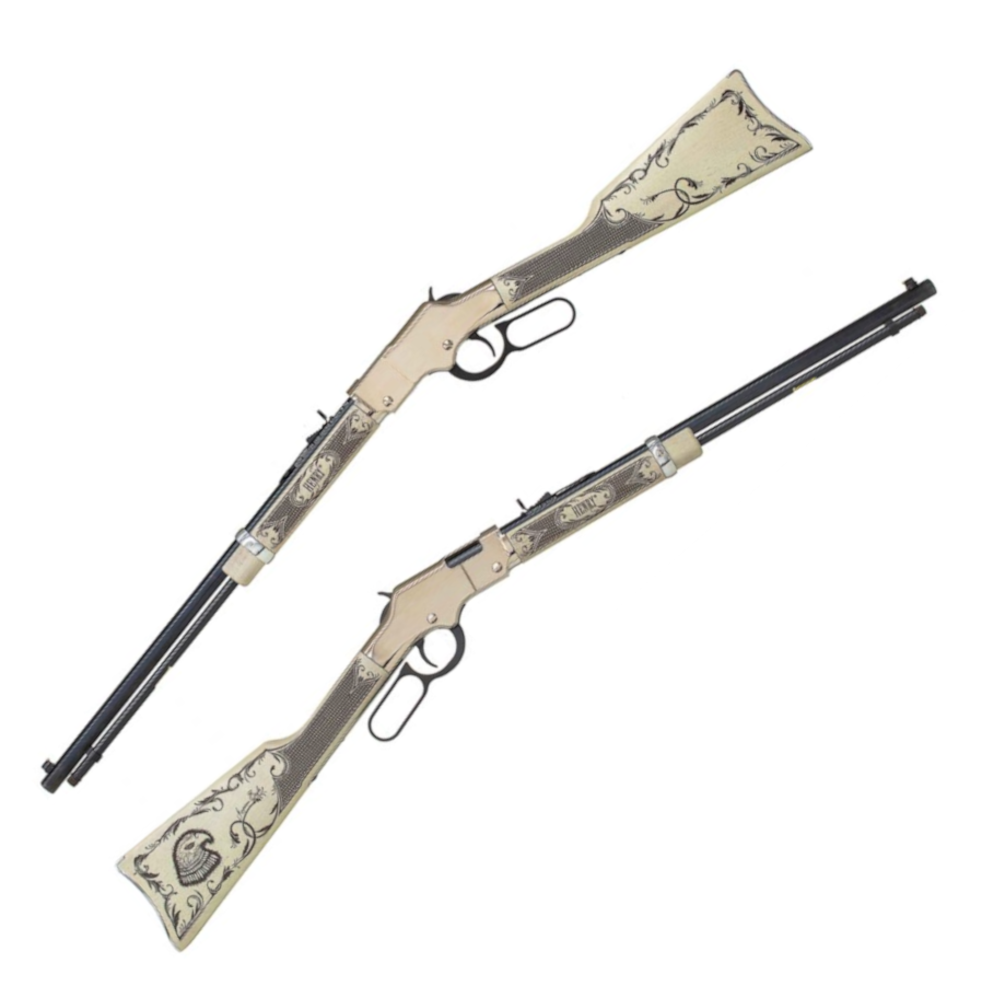 HENRY H004AE LEVER ACTION RIFLE, .22LR, AMERICAN EAGLE IVORY ENGRAVED, SILVER RECEIVER, 20", 16+1 RND is backordered and will ship as soon as it is back in stock.