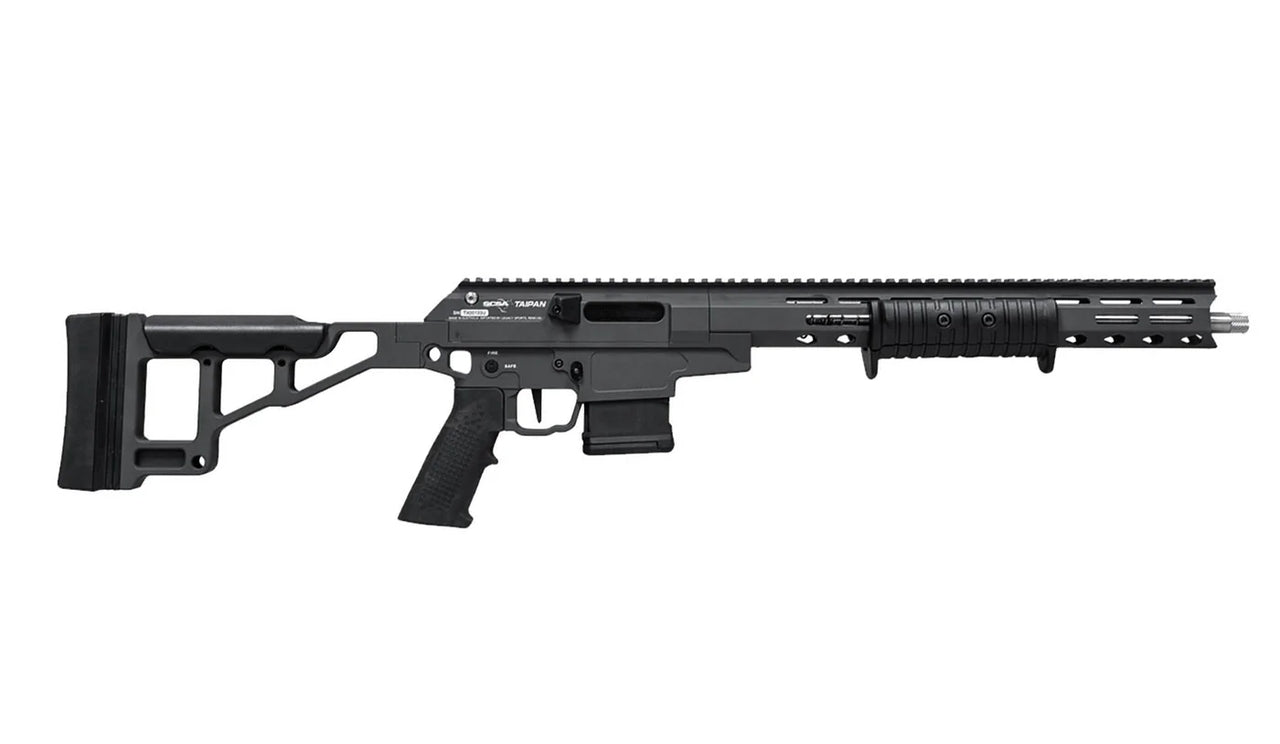 The SCSA Taipan X .223 Wylde features a 16.5-inch barrel with a versatile pump and straight-pull action, designed for precision and reliability. Available in sleek black or grey finishes, this firearm combines expert craftsmanship with practical functionality, making it suitable for both tactical applications and sport shooting. Its balanced design ensures smooth operation and consistent performance in various conditions.