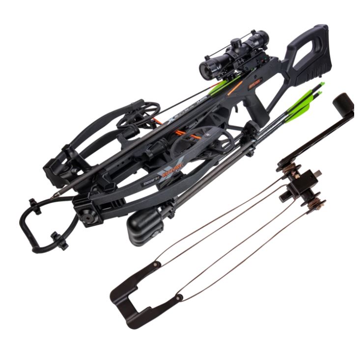 Complet avec tout ce dont vous avez besoin pour sortir dans les bois aujourd'hui, l'arbalète CD Intense Bear X avec manivelle De-Tac offre des performances intensément puissantes dans un package compact. Cette arbalète mortelle ne mesure que 10 ”de large lorsqu'elle est armée et 14” de large lorsqu'elle est non cochée. Une fois armé, le coup de puissance de 12,7 pouces tire des flèches à un coup dur de 400 pieds par seconde. La toute nouvelle manivelle silencieuse détachable peut être utilisée pour décocher l'arbalète et dispose d'un mécanisme anti-réverse pour arrêter la manivelle lorsque la poignée est lâchée. En plus de la manivelle détachable, ce package prêt à la chasse comprend 3 flèches d'ours x Truex, la portée, le carquois à 4 flèches et le lubrifiant de rail / chaîne de chaîne.