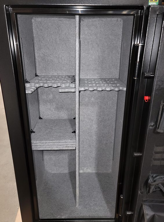 Ce coffre-fort Elite Elite 36-40 Gun Iproof dispose d'une serrure électronique et d'un intérieur flexible prêt à stocker à la fois des armes tactiques et de longs pistolets. Un intérieur en moquette gris est un organisateur de stockage de portes installé en usine avec des étuis et des sachets cousus.