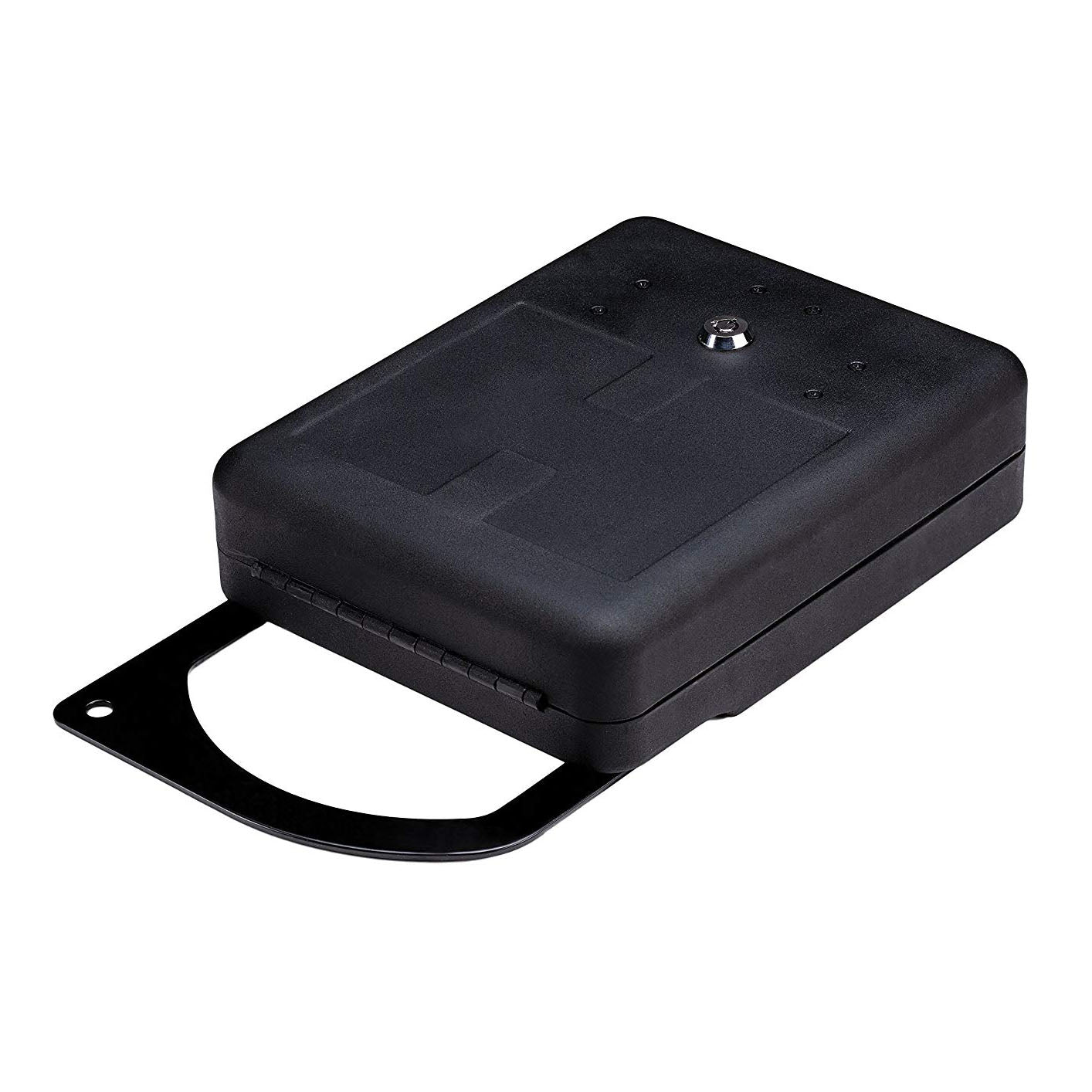 La boîte de verrouillage du bras comprend le système de verrouillage du tripoint en instance de brevet, composé de trois pattes de verrouillage en acier de 1/2 pouce de large qui fixent le couvercle à trois points de contact contrairement aux produits actuels qui n'en utilisent qu'un. La manille de verrouillage du bras offre une option de sécurité beaucoup plus forte que la norme de l'industrie coupée facilement le câble métallique. La manille de verrouillage du bras peut être ajustée pour s'adapter aux objets aussi grands que 3 1/2 "de diamètre. Les ajustements sont effectués simplement en tirant sur un bouton chargé à ressort qui libère la manille de verrouillage du bras. Très mobile, portable et sécurisé. L'accès à la boîte de verrouillage du bras est contrôlé par un verrouillage de baril et une clé et l'intérieur de la boîte est rembourré avec de la mousse épaisse en haut et en bas de la boîte pour protéger les armes à feu et les objets de valeur contre les dommages.
