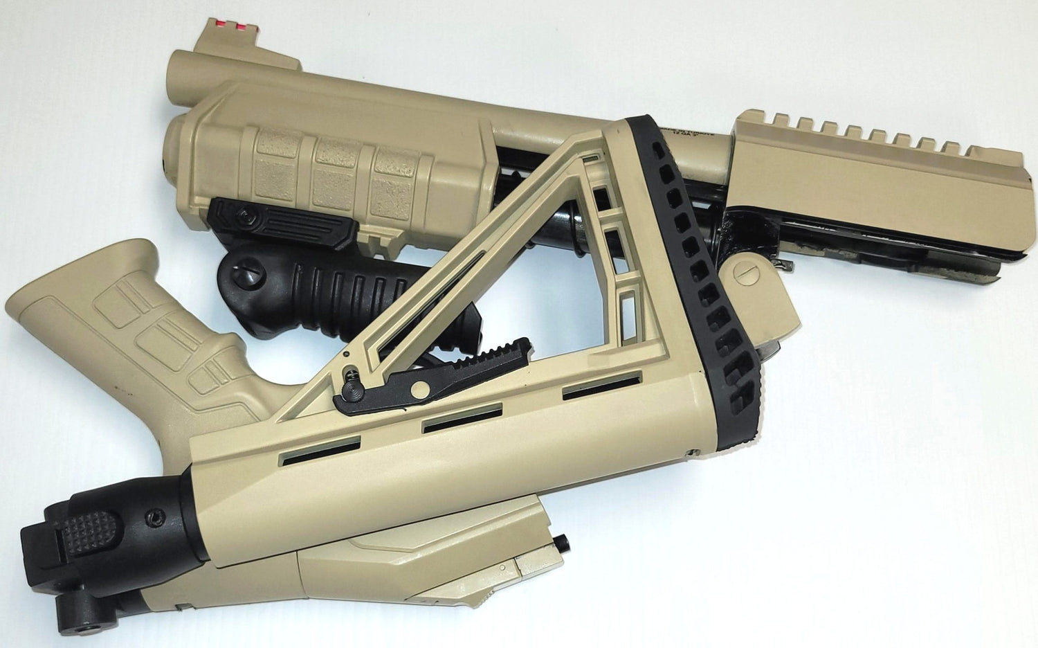 Les fusils de chasse pliants ne sont pas exactement nouveaux, mais la communauté canadienne des armes à feu a récemment accédé à une version infiniment plus moderne du concept avec la ligne de chasse pliante de la taïga. Le fusil de chasse pliant Taiga Wolverine est maintenant disponible en deux tailles, «X» avec un baril de 18,5 pouces et «M», qui signifie «Mini» et viendra bientôt avec un baril de 10 pouces. Le récepteur de Wolverine est divisé en deux segments et rejoint par une charnière sur le devant du récepteur inférieur, tandis que le récepteur supérieur abrite le boulon, le canon et le magazine. Le Wolverine X peut se plier à une longueur de 25 pouces pour un stockage plus facile, cependant, le Wolverine M est suffisamment nouveau pour que les spécifications ne soient pas publiées pour le moment.
