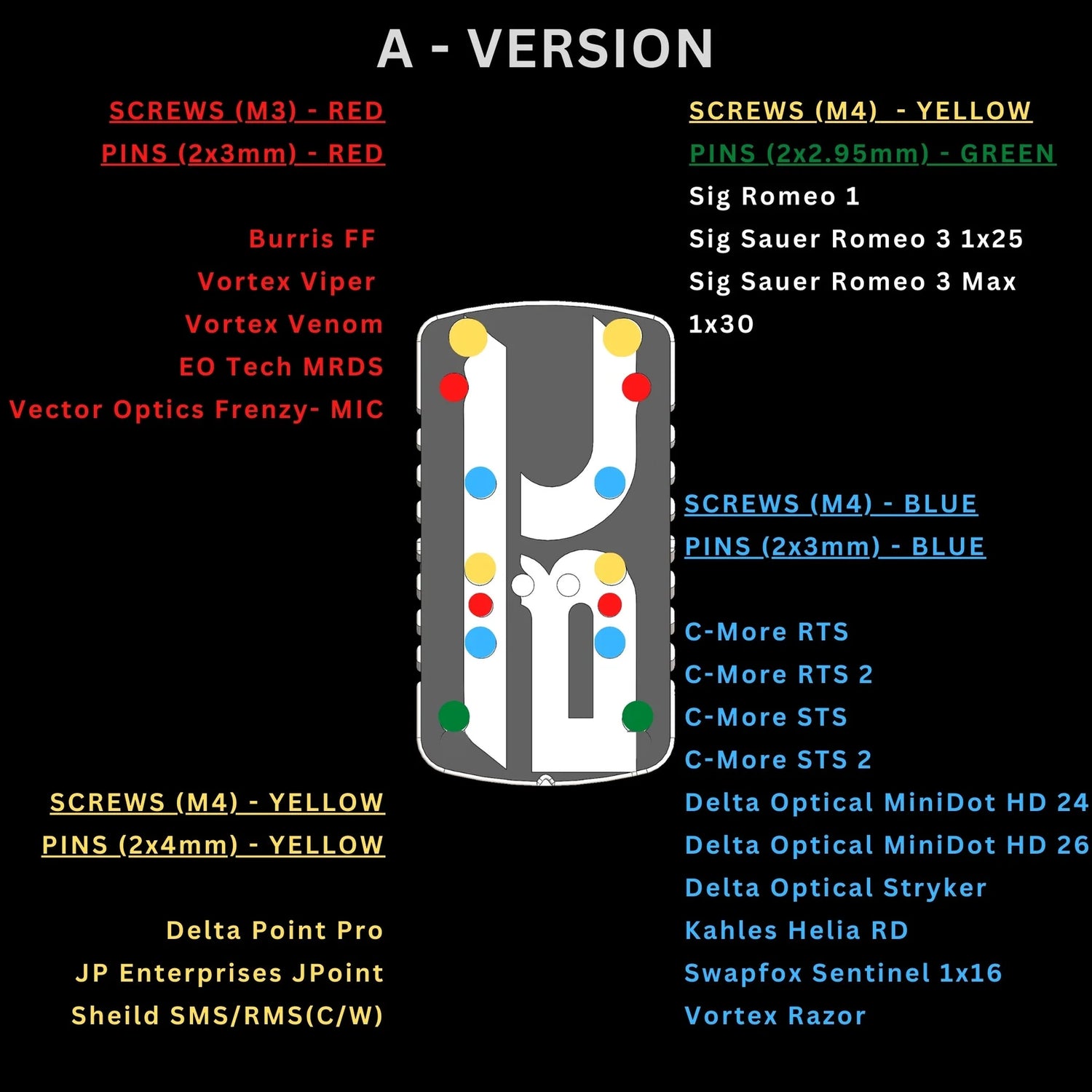 Utilisez la prudence lors de l'installation de vis, car la surchauffe peut endommager le support. Les composants de boss recommandent des lbs de 15 pouces de couple et une goutte de locti bleu sur les vis de montage. Veuillez noter que les vis de montage ne sont pas incluses, utilisez les vis fournies avec le point rouge. L'utilisation d'un armurier certifié est suggérée pour assurer une installation appropriée.