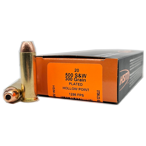 HSM .500 S&W 300gr Plated Hollow Point (HP) offre des performances puissantes et une précision constante. Idéale pour la défense personnelle, la chasse au gros gibier et l’usage tactique, cette munition assure une expansion contrôlée et une pénétration en profondeur.