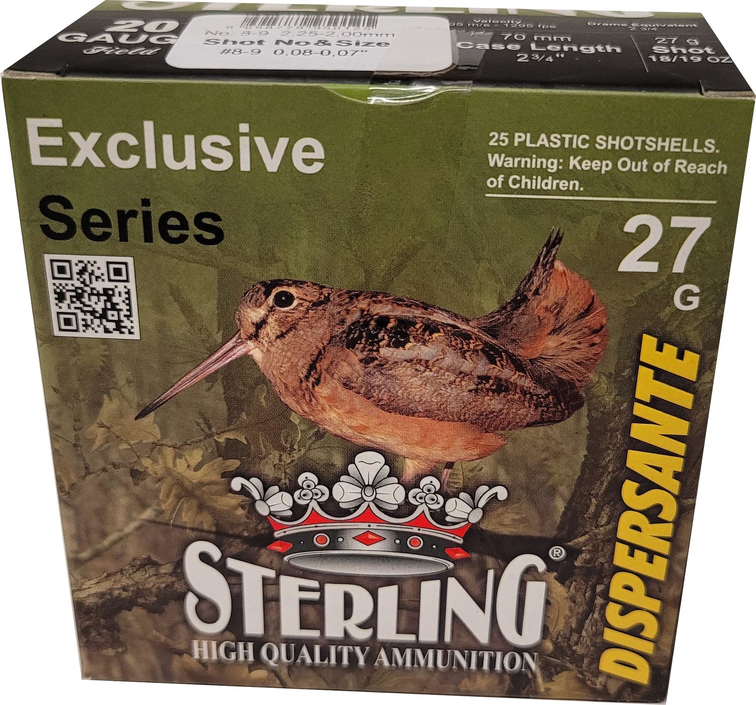 Sterling BirdShot 20ga, 27gr, # 8-9, 2-3 / 4 "- boîte de 25 RDS
