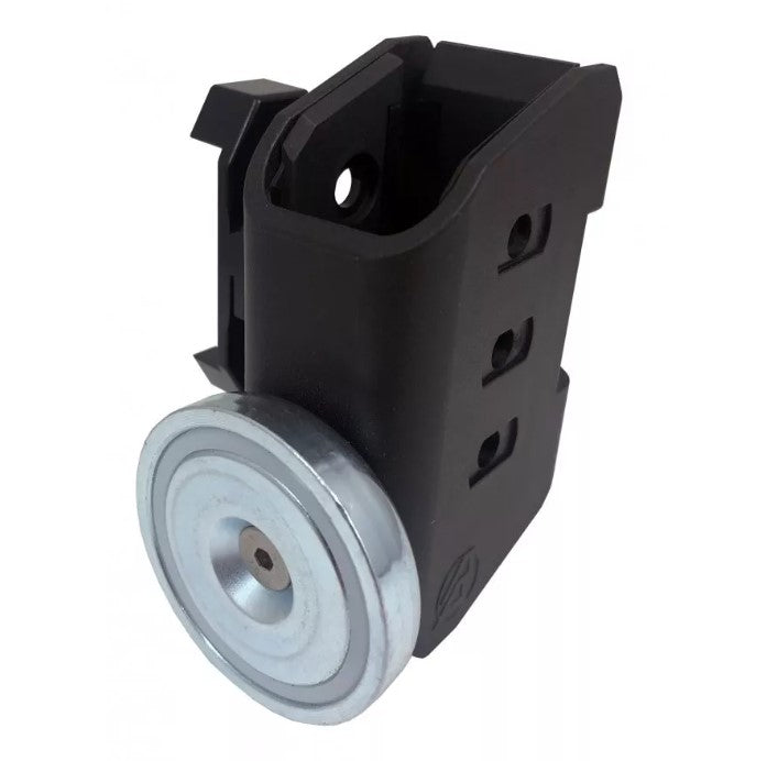 The Polymer used in the pouch body of the Alpha-XiP is a glass-fiber reinforced PA66 material, which is extremely hard and durable. This allows us to use the same mounting system as used in the aluminum body. Other than the pouch body material itself, the Alpha XiP and Alpha Xi are identical. Both incorporate the same Aluminum ball-joint hanger and include a full set of spacers to support a wide array of magazines.