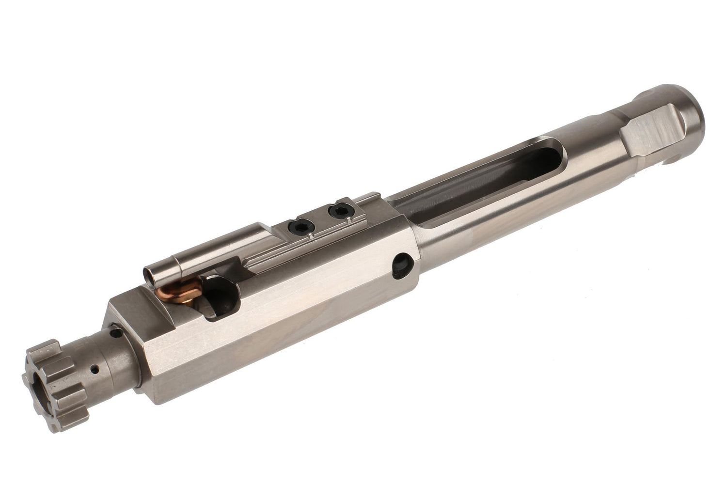 The Enhanced .308 Bolt Carrier Group is precision machined from 8620 Steel with a 9310 precision hard ground bolt. The entire carrier assembly is electroless nickel boron coated for lubricity and corrosion resistance. The carrier design features forward facing gas ports which offers a smoother energy pulse and a system that runs cooler and cleaner with less pressurization of the upper receiver when running a suppressed barrel. The flared boss at the tail of the carrier provides a more consistent lock position within the upper receiver while its 1 lb 2.1 oz weight helps to increase lock time.