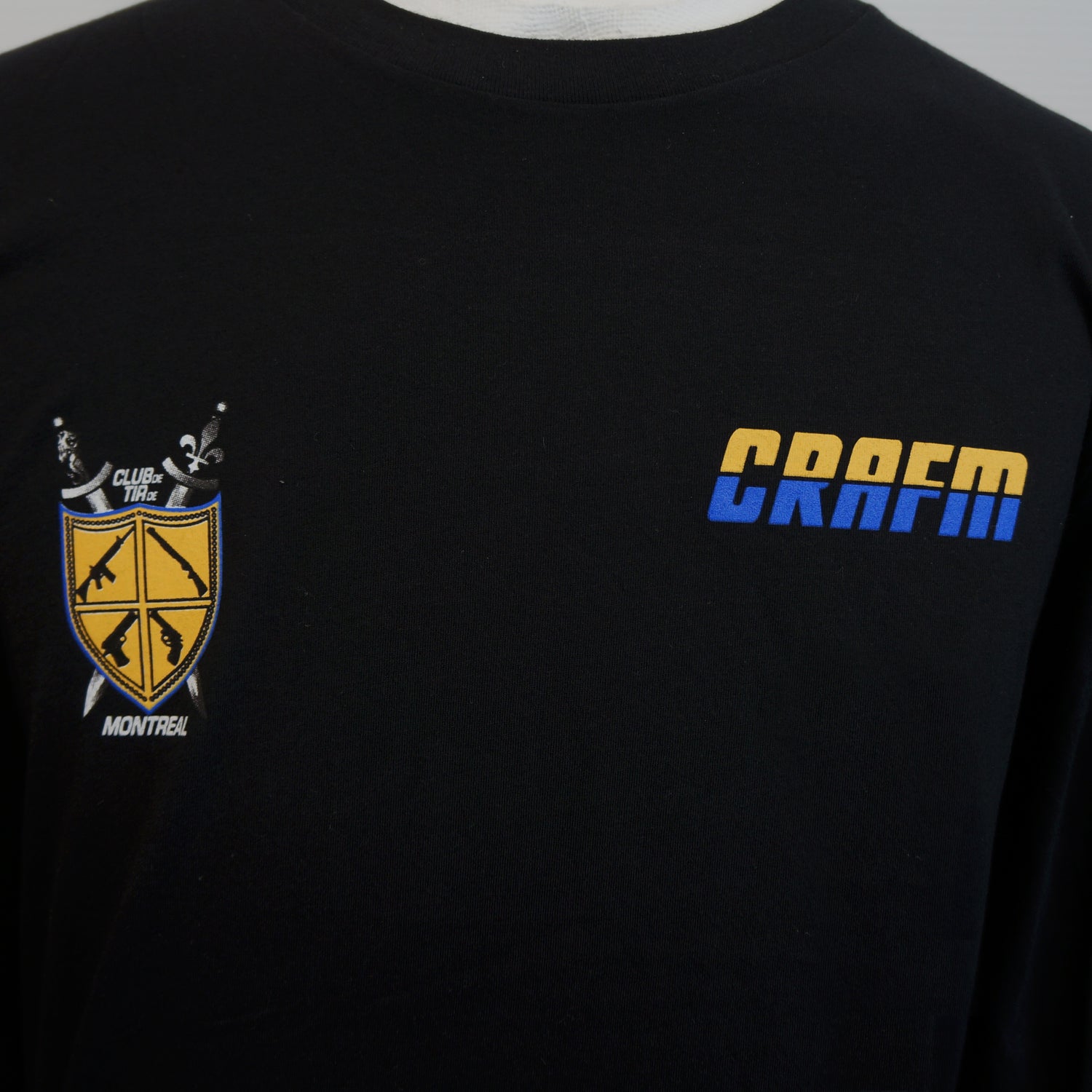 "Support Your Local Pew Pew Club" Long Sleeve Shirt - White on Black/Blanc sur noir / XL is backordered and will ship as soon as it is back in stock.