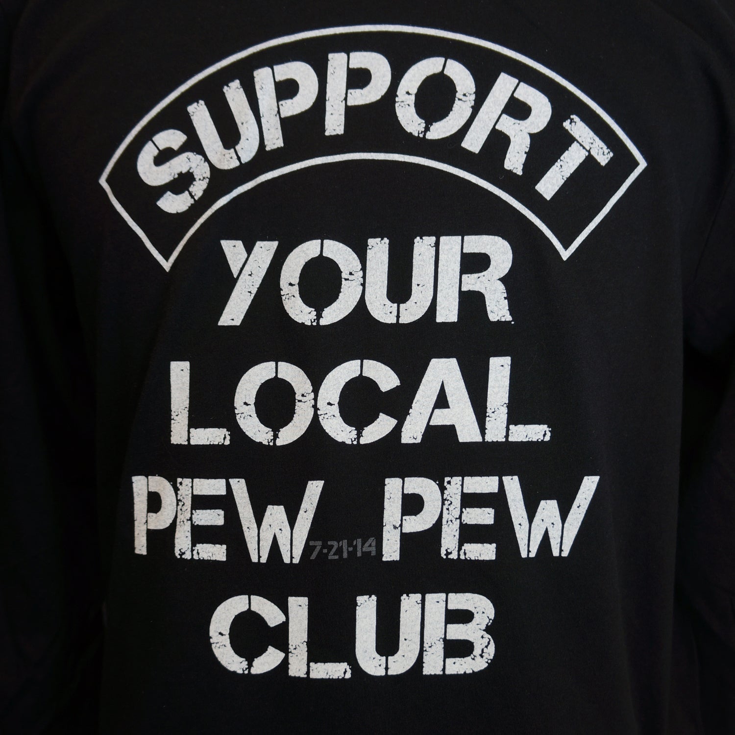 "Support Your Local Pew Pew Club" Short Sleeve T-Shirt - L is backordered and will ship as soon as it is back in stock.