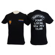 "SUPPORT YOUR LOCAL PEW PEW CLUB" Short Sleeve T-Shirt are 100% Combed Ring-Spun Cotton and 90/10 Cotton/Polyester. Crew neck style.